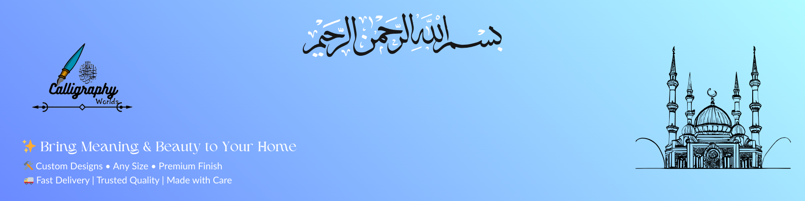 Each piece at Aalif Calligraphy is crafted by hand — blending devotion, artistry, and precision. What began as a personal journey of faith and creativity has grown into a passion for transforming sacred words into timeless décor. Every stroke carries intention, every curve reflects beauty inspired by the Divine.